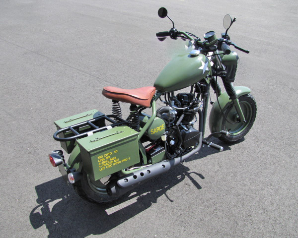 The Sarge had a lot of custom touches, including .50-cal ammo cans as saddlebags, a near complete dechroming, lovely OD green paint, brown leather seat, and more. It was a stunning motorcycle. My El Cheapo Bell helmet and its Army Air Corps livery completed the package. I found a stone wall somewhere in the hills above the CSC plant when the plant was at the La Verne airport, and that made for a nice backdrop. The Sarge photo at the top of this blog has always been one of my favorites.