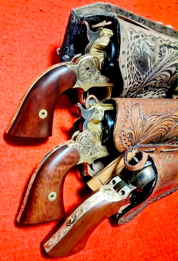 I asked Aldo if I could post some of his photos here on the ExNotes blog and he said okay.  This is beautiful work and I’m happy to share it with you. First, a few of the guns and their holsters…