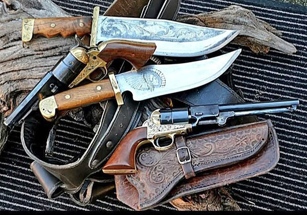 All work is done in-house by hand. The knives are made entirely, complete with sheaths. The Colt sheaths are also handmade. For my personal satisfaction…I do engravings upon request, after agreeing on the work and cost.  I don’t do it for the money.