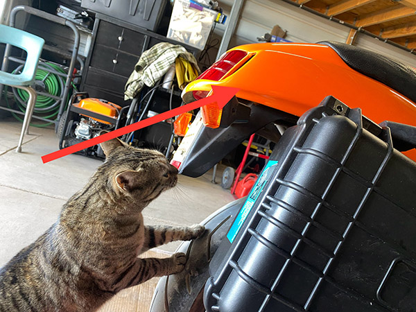 Arrow points to the small tail compartment. Who let the cat out of the bag?