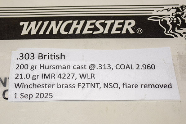 After completing all 20 .303 British neck-sized cartridges, I put them in a box and applied a label, as I do with all my reloaded cartridges.