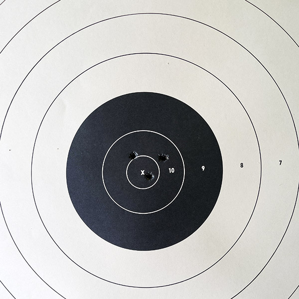 I’m pleased with these results. I might need to move the rear sight a scosh to the left, but I want to shoot a few more groups to confirm that. That will happen in the near term. I am also thinking about a taller front sight. The rear sight is already in its lowest position; a taller front sight would bring the point of impact in line with the point of aim. We’ll see.